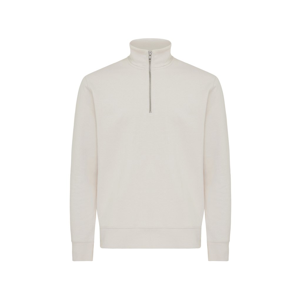 Acest hanorac unisex cu croială modernă și fermoar scurt la gât este realizat din 100% bumbac, din care 30% reciclat și 70% organic, oferind o combinație excelentă între confort, durabilitate și responsabilitate ecologică.
